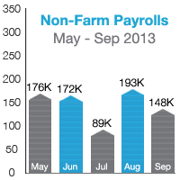 What happened last month? The Labor Department reported that employers added 148,000 workers in September, which was below the 183,000 that was expected. However, the numbers for July and August were revised higher. Additionally, the Unemployment Rate fell to 7.2 percent, which is the lowest level since November 2008.